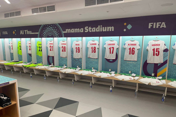 * رختکن تیم ملی فوتبال ایران مثل دیدارهای گذشته از ساعاتی قبل از بازی آماده این دیدار بود و پیراهن ها و وسایل بازیکنان با نظم خاصی برایشان چیده شده بود./ مهر