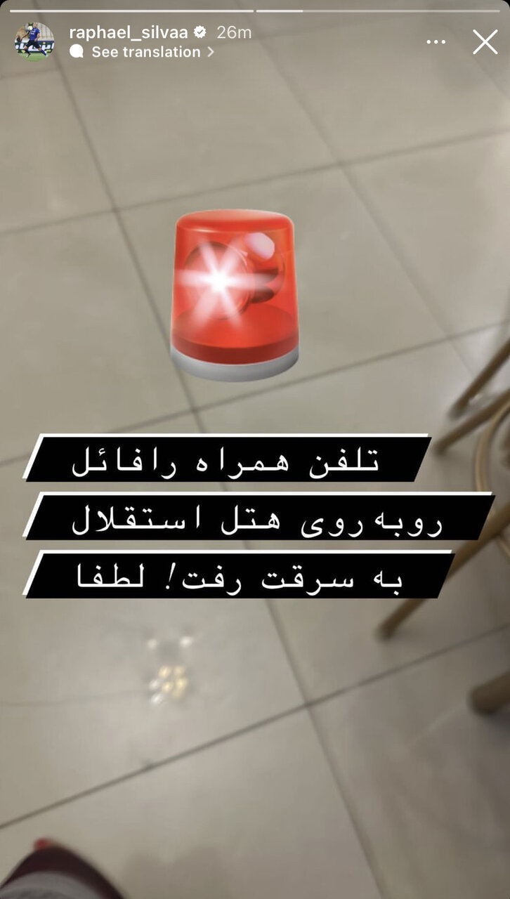به گزارش راهبرد معاصر، رافائل سیلوا مدافع آبیهای تهران در حالیکه امروز پس از تمرین در مسیر برگشت به منزلش بود، مورد سرقت قرار گرفت و در این اتفاق تلفن همراه او ربوده شد.