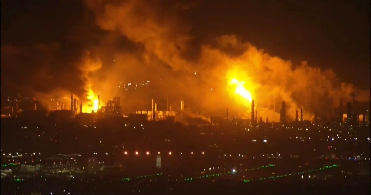 انفجار و آتش سوزی عظیم در پالایشگاه نفت لس‌آنجلس + فیلم