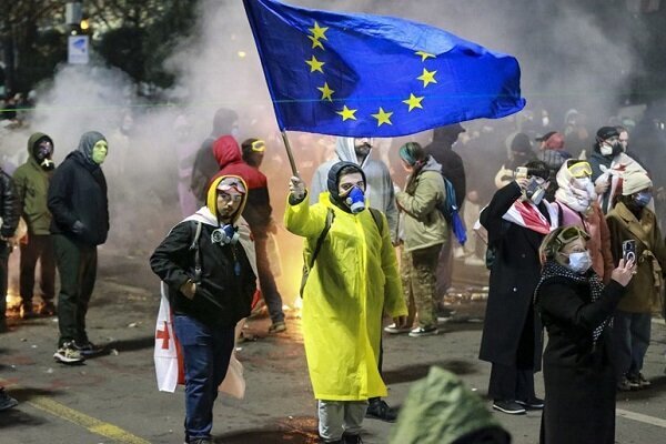 به گزارش خبرگزاری تاس، معترضان در تفلیس به سمت کاخ ریاست جمهوری سنگ پرانی کرده و به سمت پلیس وسایل آتش زا پرتاب میکنند.