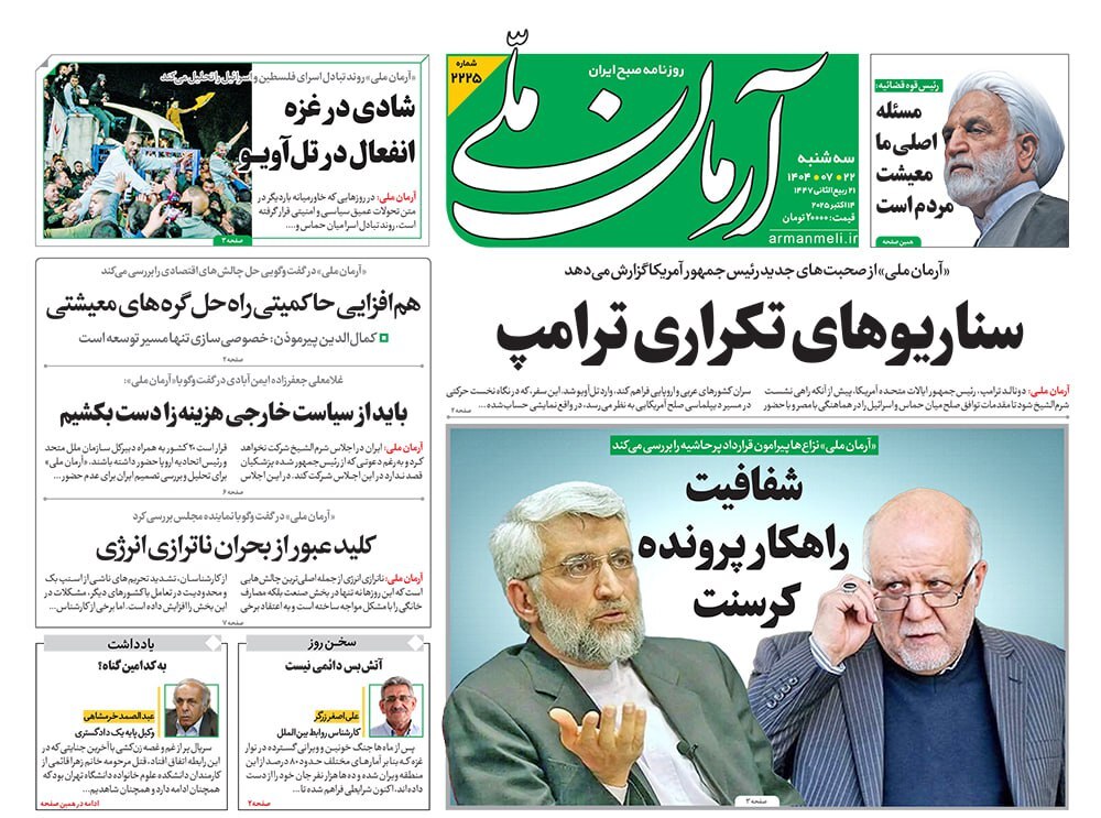تصاویر/ پیشخوان روزنامه‌های ایران سه‌شنبه ۲۲ مهر ۱۴۰۴