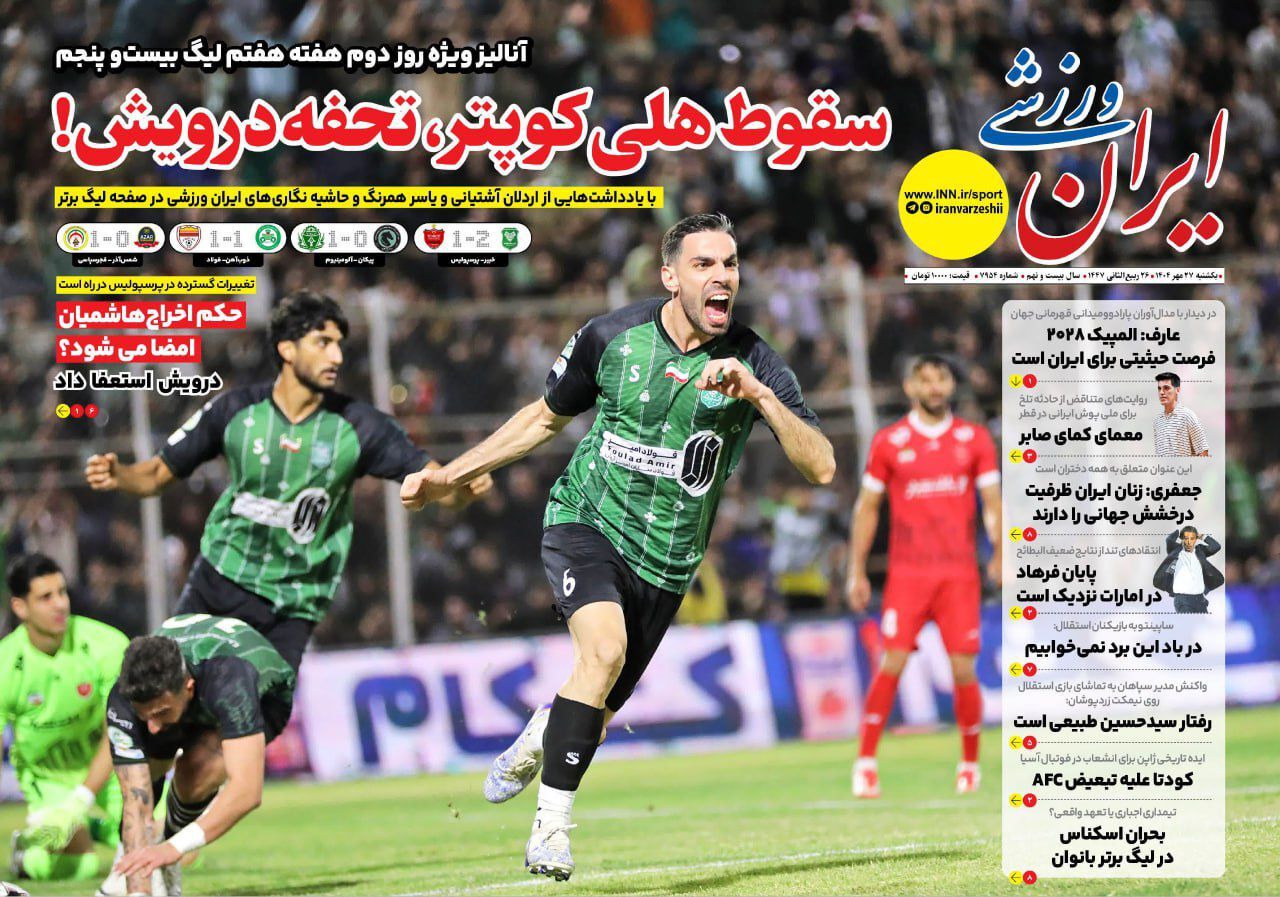 تصاویر/ صفحه نخست روزنامه‌های ورزشی یک‌شنبه ۲۷ مهر ۱۴۰۴