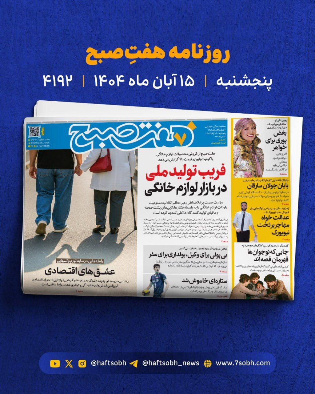 تصاویر/ صفحه نخست روزنامههای ایران شنبه ۷ تیر ۱۴۰