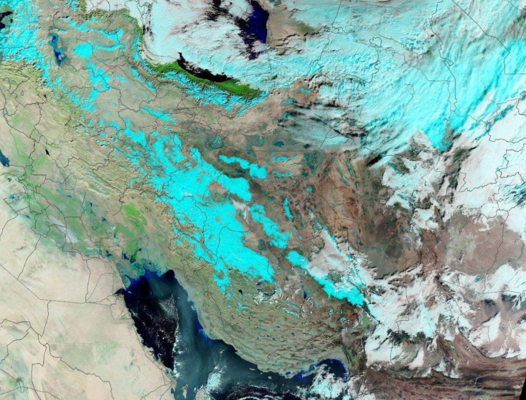 عکس / تصویر ماهواره‌ای ظهر امروز ناسا از پوشش برف در ایران