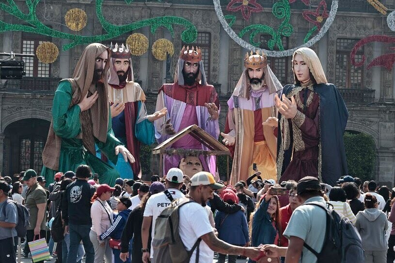 بازدید گردشگران در تعطیلات کریسمس از میدان زوکالو مکزیکوسیتی + عکس