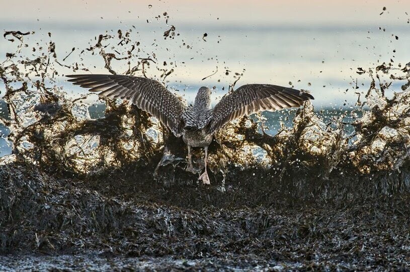 عکس/ پرواز یک مرغ دریایی در امواج خروشان ساحل دریای بالتیک آلمان