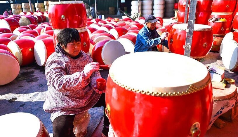 یک کارگاه تولید طبل در لویانگ چین + عکس
