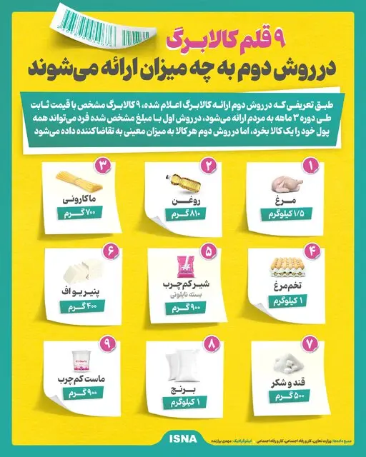 اینفوگرافیک/ ۹ کالای مشخص کالابرگ، در روش دوم به چه میزان ارائه میشوند؟