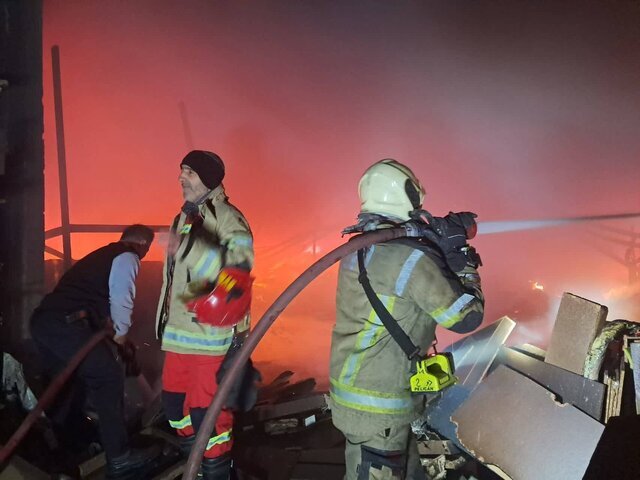 آتش سوزی گسترده کارگاه مبلسازی به وسعت ۸۰۰ متر در جاده ساوه